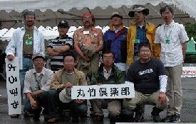 平成16年6月05日〜06日石徹白Fisher's Holidayも無事に終了致しました、都合で参加できなかった会員諸氏にはお仲間の紹介、一般の閲覧者の方には丸竹倶楽部への誘いとなれば幸いです。 それでは僭越ながらひらめき爺がご案内いたしましょう! 上段右端から紹介します、先ずはご存知倶楽部の主宰「東」様です。 お二人目は関西地区での広報委員長「INHARDY」卿。 三人目は長野から参加の「峯村」様初参加で御座います。 四人目は私の漫才の相方「らいじん」様で双子の弟様でしたか、花(竹)咲か爺。 五人目は小栗様、ユニークな小ネタは中々の物・・目下修行中か。 六人目は後ほど、下の段左から「窓際の釣人」様ご存知「山猿軍団」のメンバー。 次はひらめき爺・・・駄洒落をこよなく愛す、又の名を「西川来よし」。 右から二人目は「ふりーすとん」卿関西地区SMの帝王火入れと鞭の扱いはお任せ。 右端はIDO氏一年の旅から戻られました一年発起と言うのでしょうか。 冗談左端は「よろずや主人」斉藤氏です、パーツ他人生相談何でも取り扱いらしい。