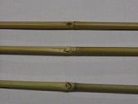 空き地や雑木林の脇などに見られる雑草のような竹です。 1つの節から数本〜十数本の枝が出ています。節の上部が丸く膨らんでいるためこの名前がつきました。丸節竹には、節の下が節の上より細いコップを重ねたような独特のテーパーがあります。また、個体差が大きく,葉の大きさや丈,テーパーなどもさまざまです。素材の強さもかなりのものですから,好みのアクションを見つけるのはそれほど難しくないでしょう。